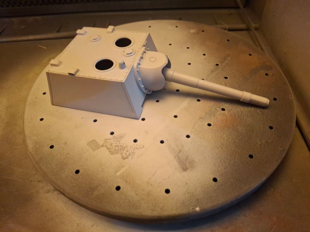 The turret has already been started with the usual care arouns cutting resin. The rest of the parts are either 3D printed or metal. The barrel and muzzle brake are particularly nice.