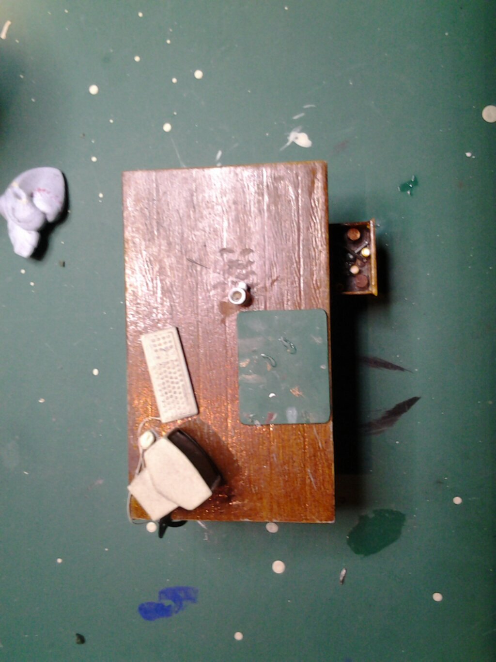 Good progress over tge last three days on this. The desk now has a computer setup finished and the drawer is filled with paints and equipment. Next up is more stuff for the desktop including a lamp from the Diopark set and maybe making another one also. The chair now has all five castors on again though it may need rebalancing.