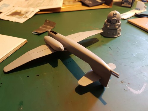 The finished kit will have the uc down. The camo plan is to paint the upper half in 75 and then mask up some blobs and then spray 76 overall. Masking will be the usual tamiya tape which I intend to cut out with the new tool i bought at Telford. Photos to follow.