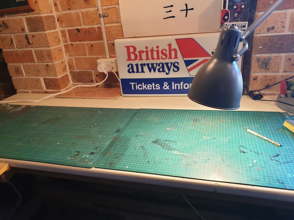 Currently I’m busy on 1:1 scale gardening and after carting dirt, making up new garden beds from IKEA like kits etc the job of tidying the model bench is just a Bridge Too Far.