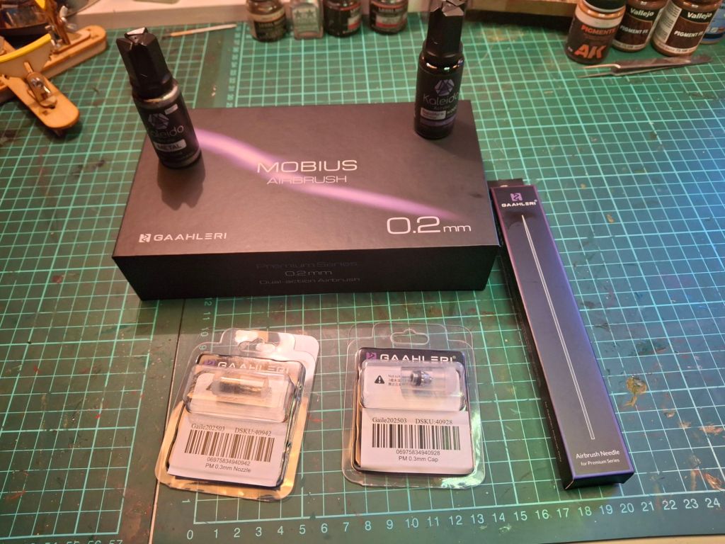 First up is my new airbrush with both 0.2 and 0.3 needles