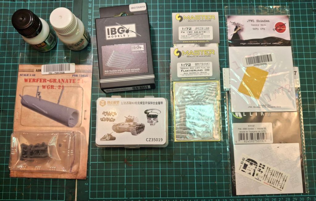The last two weeks involved going on holidays and visiting two model shops with no purchases. On the other hand many recent purchases via the web came home to roost as shown below.